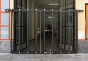 (1) Art 29.2.- Altura máxima desde el suelo al travesaño inferior: 10 cm, salvo que la orografía del terreno o la solución estructural lo impidan. (2) Art 29.4.- La estructura no presentará elementos con signos de desperfectos, tales como abolladuras o corrosión, siendo sustituidos cuando supongan una minoración de las condiciones de seguridad exigidas. (3) Art 29.7.- Las barreras verticales que se sitúen en el umbral de una puerta o alineadas o enrasadas a la fachada deberán colocar, al objeto de prevenir incidencias, un elemento indicativo o de señalización para el caso de que queden ciegas (cerradas). Art 26.2.- La anchura entre barrotes deberá ser conocida por participantes y espectadores por medio de carteles colocados en el lugar o lugares de celebración del festejo.